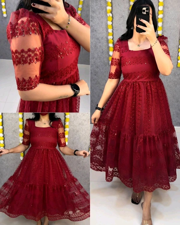 Introducing Cinderella, a stunning princess-style maxi gown designed to bring out grace, charm, and timeless beauty. Crafted using premium heavy net fabric, this gown features intricate flower embroidery enhanced with rich sequence work, creating a luxurious and eye-catching look.