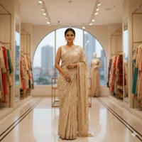 Gold Beads Handwork Designer Saree