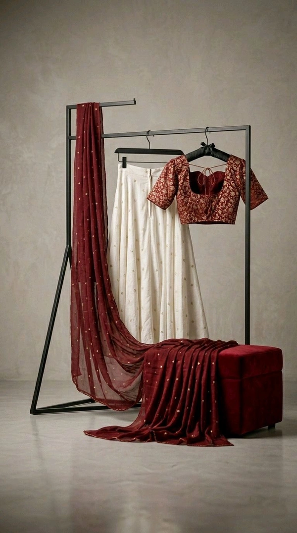 This lehenga set is designed to make you stand out with its rich flare, elegant shine, and comfortable fit—perfect for making unforgettable impressions.