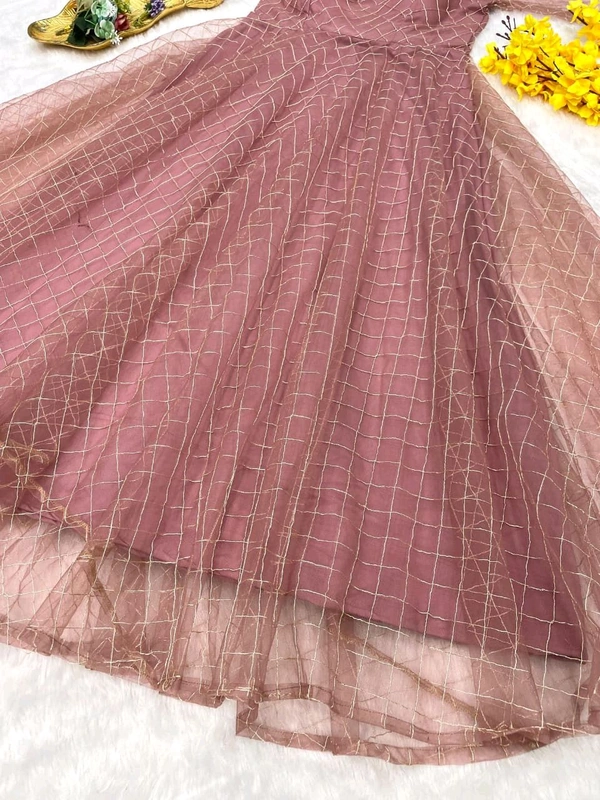Made with heavy net fabric, the frock offers a graceful structure while maintaining a soft, elegant flow. The intricate embroidery enhances the overall look, while the heavy crepe lining ensures comfort and a smooth fit throughout the day.