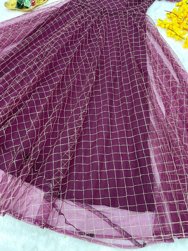 Made with heavy net fabric, the frock offers a graceful structure while maintaining a soft, elegant flow. The intricate embroidery enhances the overall look, while the heavy crepe lining ensures comfort and a smooth fit throughout the day.