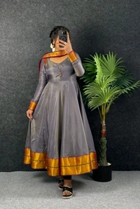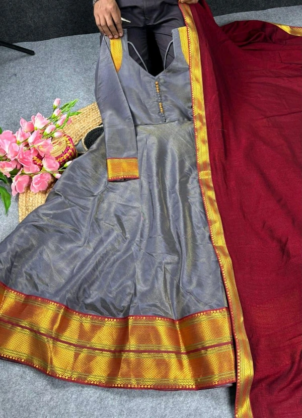 Traditional Russian Silk Anarkali with Kanjeevaram Zari Elegance