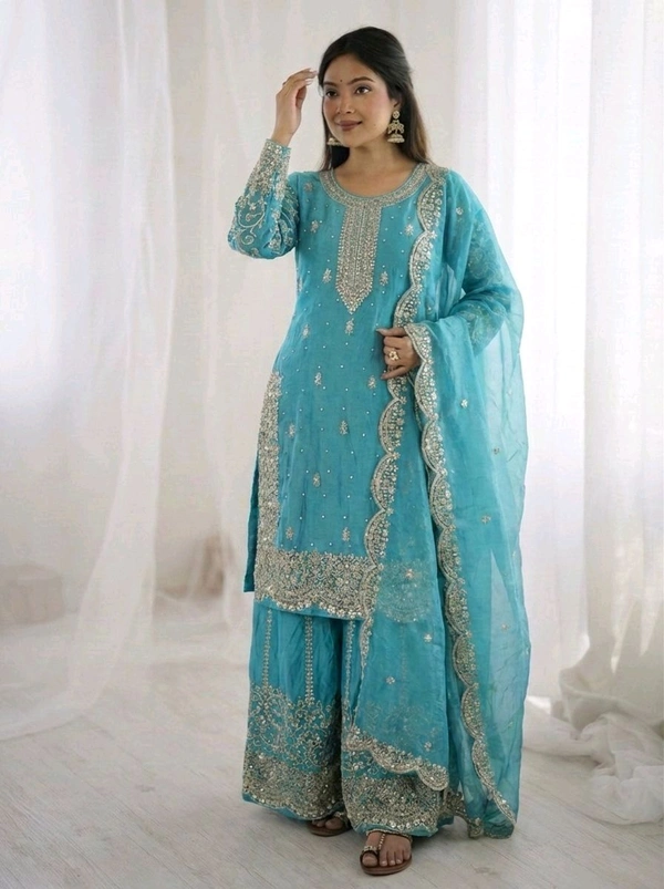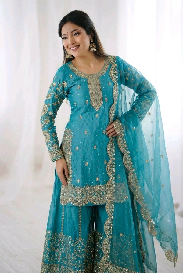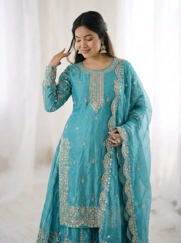 Sameera - Heavy Embroidery Sequence Work Top, Bottom & Dupatta Set