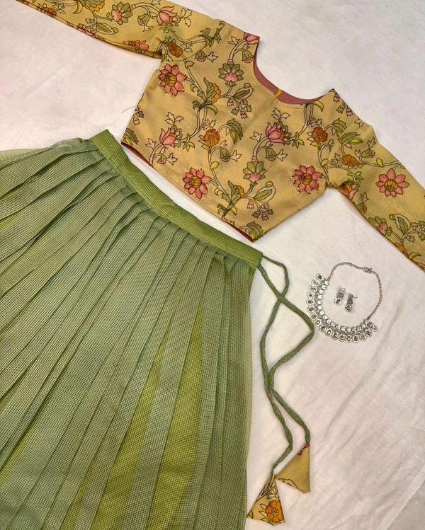 Crafted with a beautiful combination of Kota Doriya and Printed South Silk, this lehenga offers a graceful look with a rich traditional feel.