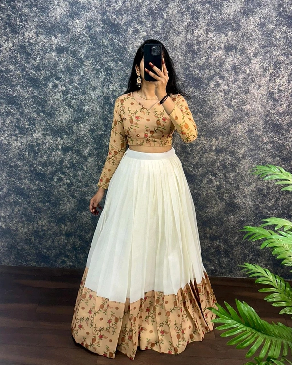 Crafted with a beautiful combination of Kota Doriya and Printed South Silk, this lehenga offers a graceful look with a rich traditional feel.