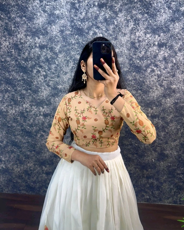 Introducing our exclusive crop-top lehenga set, designed with our own original design and styling. A perfect blend of elegance and comfort, ideal for festive occasions, parties, and celebrations.